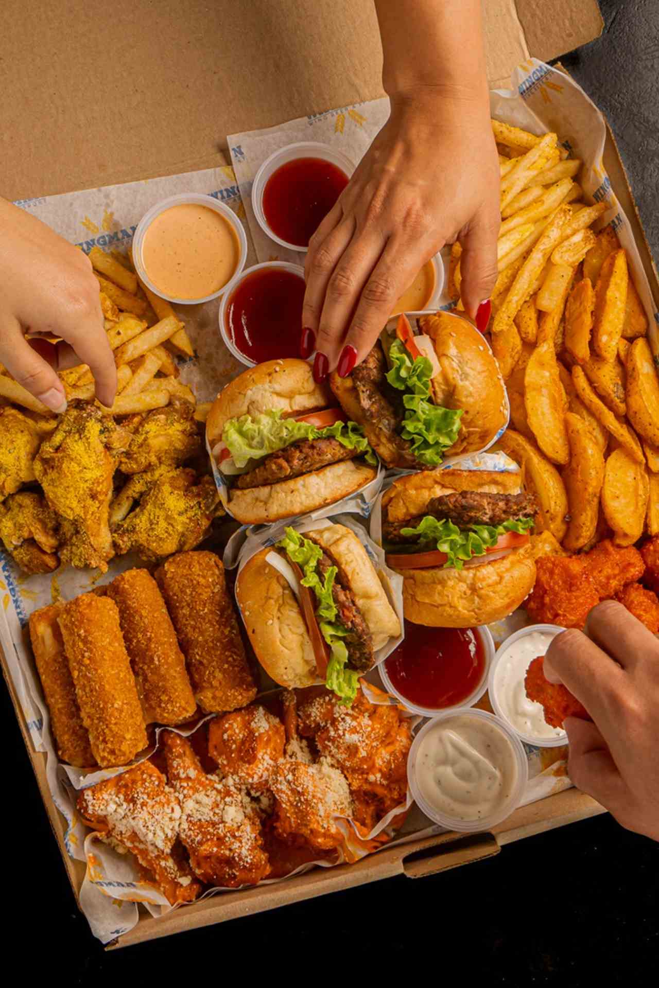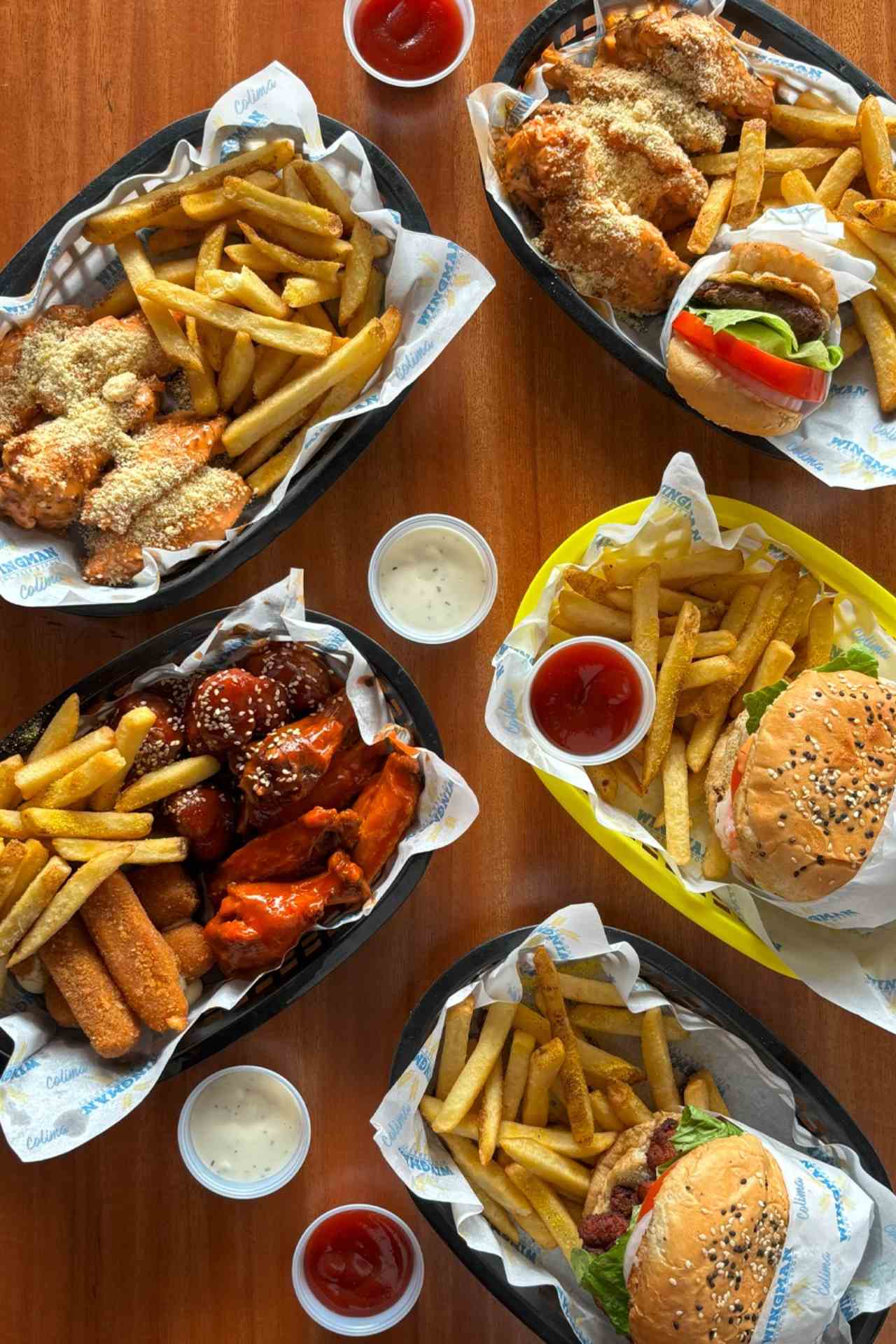 Wingman en San Fernando. Especialistas en alitas, hamburguesas y buen ambiente. En Wingman encuentras alitas crujientes con múltiples sabores, boneless, papas, hamburguesas y cervezas, perfecto para juntarte con amigos o familia, ver un partido y pasar un buen rato.