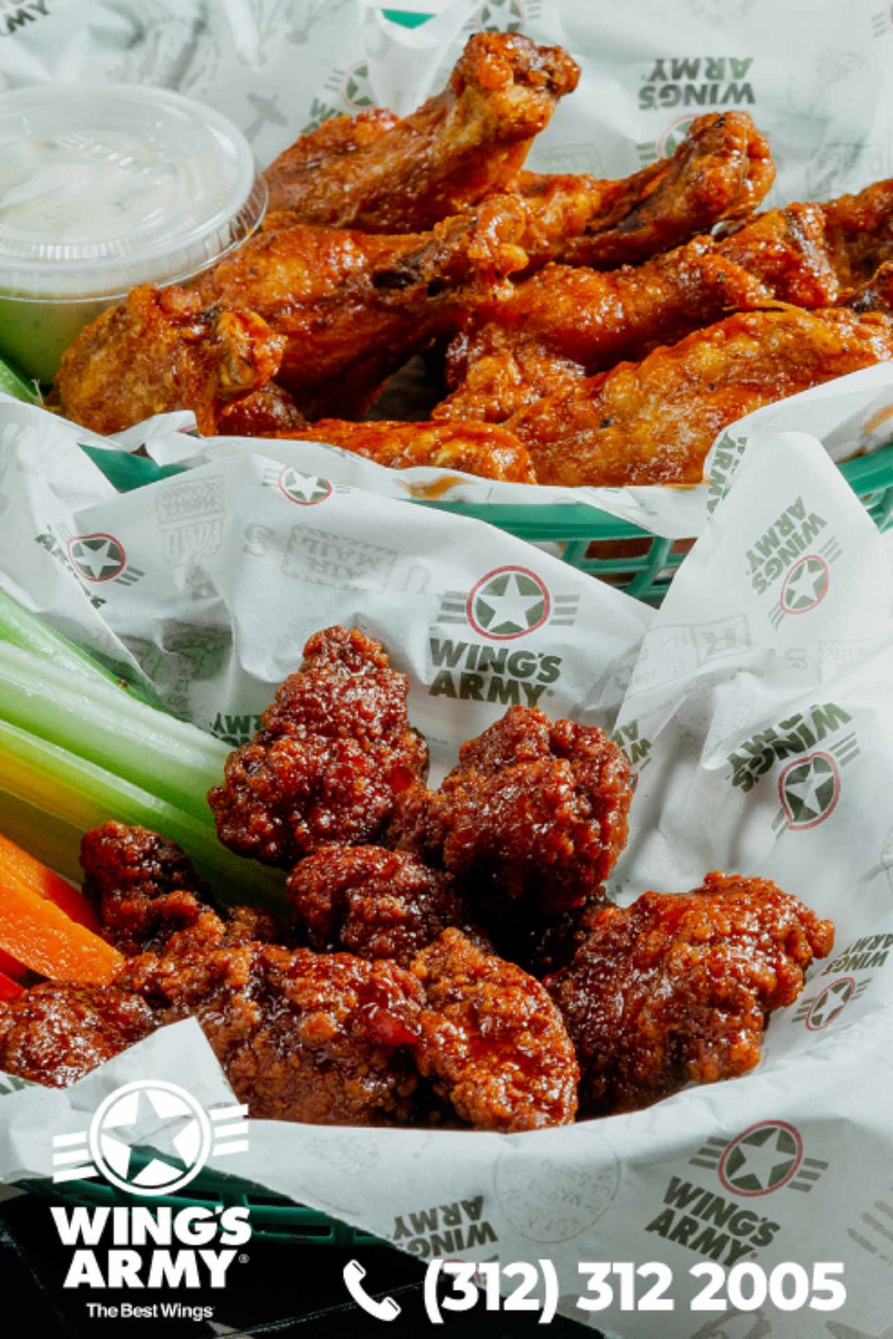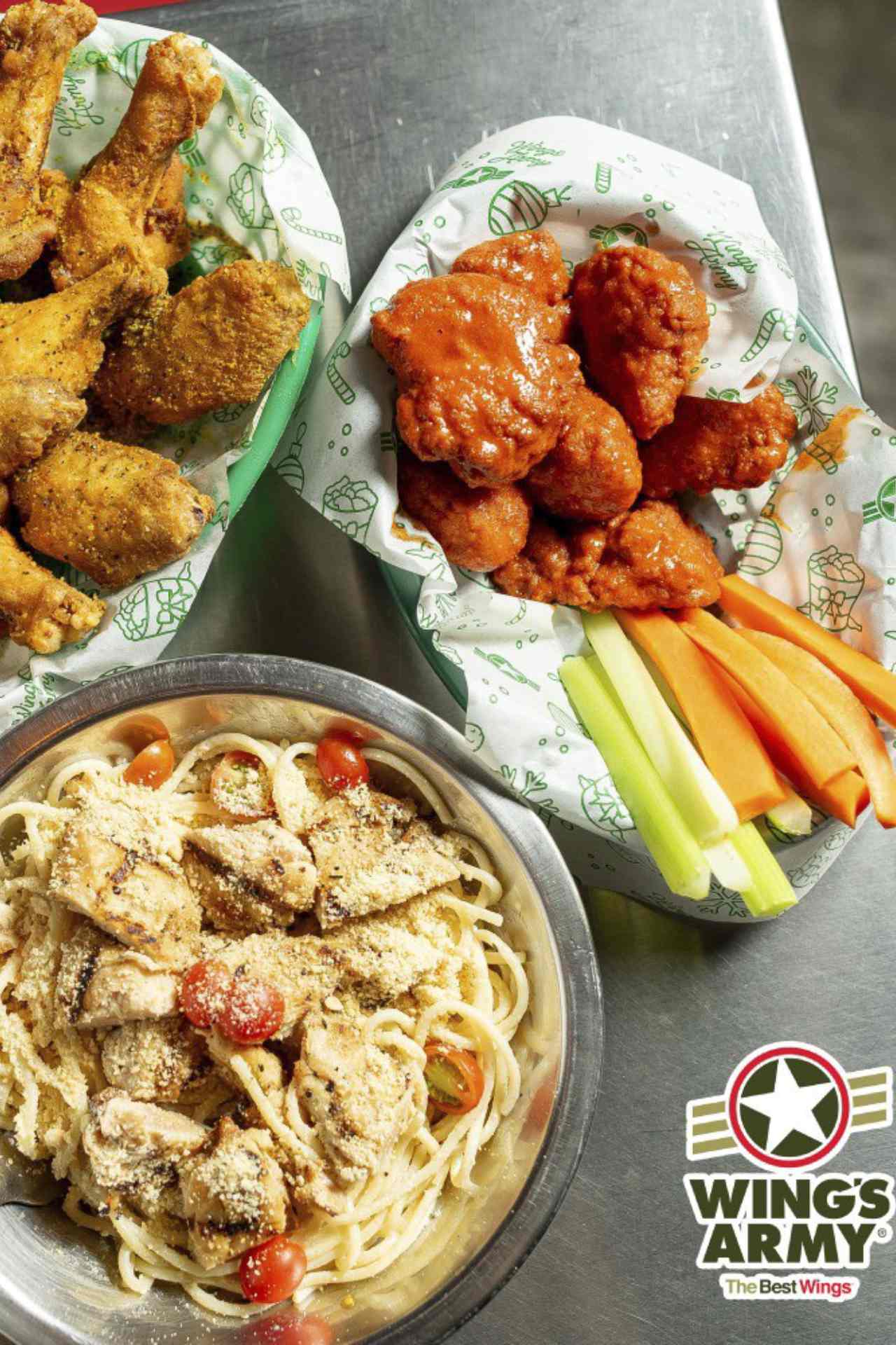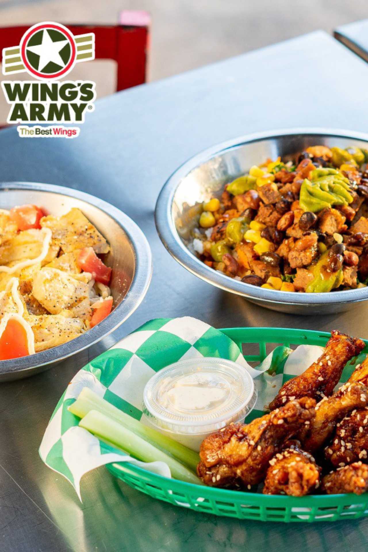 Wings Army en San Fernando. Restaurante especializado en alitas de pollo con una gran variedad de salsas para todos los gustos. Además de alitas, ofrecen platillos como costillas, burgers, bowls, papas, boneless y acompañamientos, ideales para compartir entre amigos o familia.